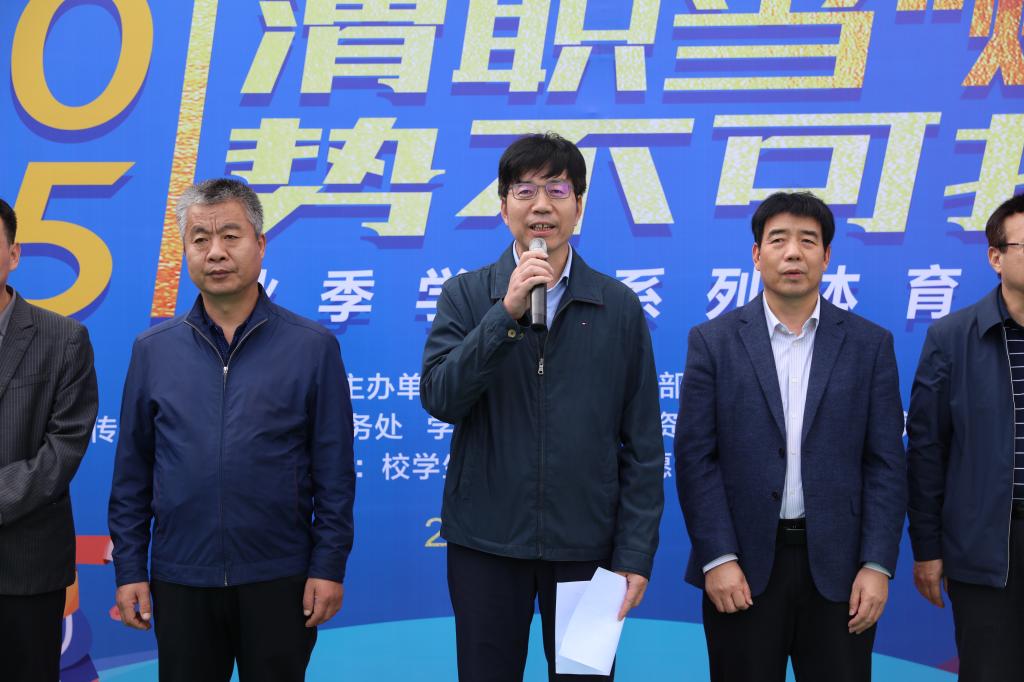 王录军在致辞中提出,学校高度重视体育育人工作,通过开展多样化体育活动,在强健学生体魄的同时培养其团队精神;他还鼓励广大师生积极参与,共同营造“人人参与、个个争先”的浓厚体育氛围。