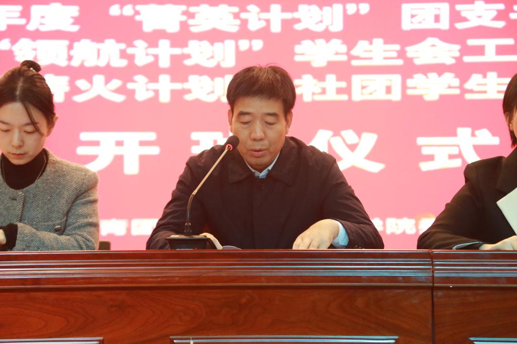 为进一步加强学生骨干队伍建设,提升团学干部的综合素质与履职能力。10月21日,我校在图书馆报告厅隆重举行2025年度“菁英计划”“领航计划”“薪火计划”三大培训班开班仪式。党委副书记王录军,团委书记冯晶,团委张乐平,各班级团支部书记,校、院两级学生会组织全体工作人员,在校正式注册的学生社团主要负责人参加,仪式由团委副书记牛文妍主持。