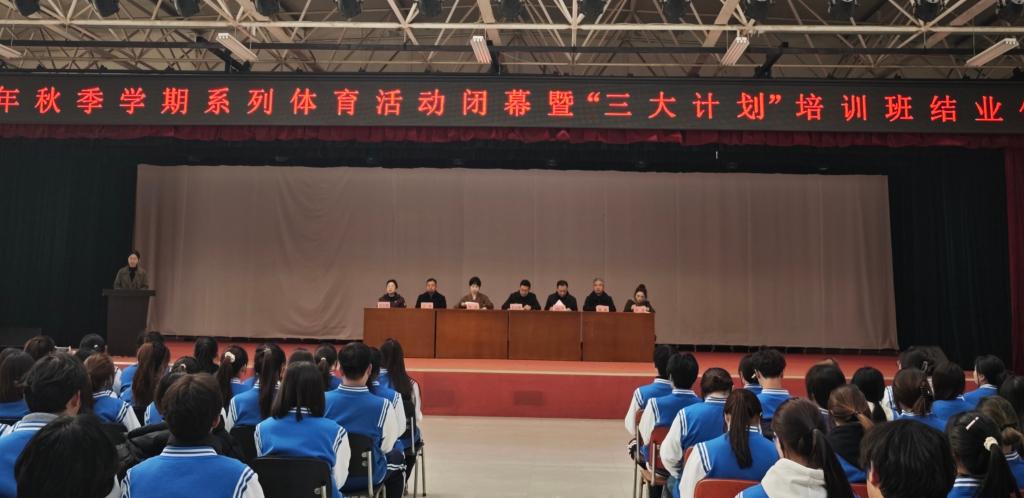 12月10日,校团委在大学生活动中心举行2025年秋季学期系列体育活动闭幕式暨“三大计划”培训班结业仪式。党委委员、副院长赵永刚,基础课部主任凤红伟,团委书记冯晶,相关职能部门负责人及各二级学院团总支书记、参赛运动员代表、参训学员参加,大会由团委副书记牛文妍主持。