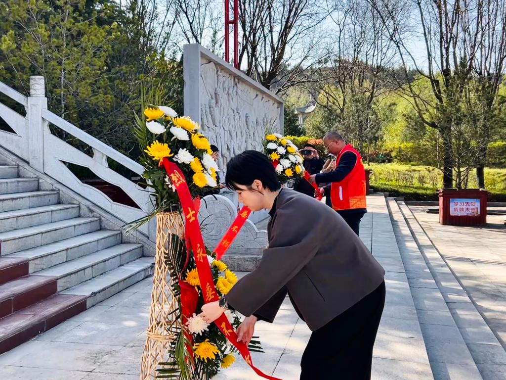 全体人员首先来到潼关县烈士陵园,举行庄严肃穆的敬献花篮仪式。在革命烈士纪念碑前,师生们整齐列队,默哀致敬,向为民族独立和人民解放事业英勇献身的革命先烈敬献花篮,深切表达对英烈的崇高敬意与无限哀思。